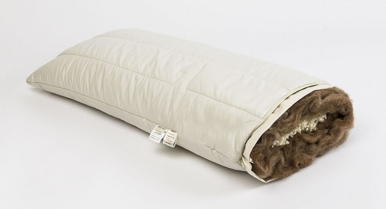 Kuschelig weich und doch stützend. Bei Benutzung verfilzt die Alpakawolle leicht, nimmt somit die Körperform an und trägt damit zur optimalen Nackenentlastung bei. Gefüllt mit Alpakavlies und Schafwollkügelchen (kbT) zur Stabilisierung des Kissens.
